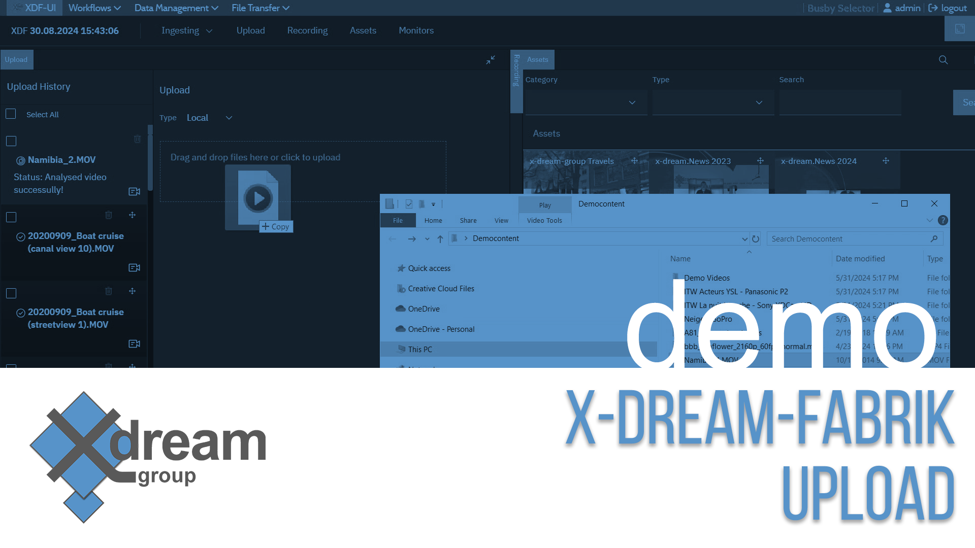 ARCHIVE consists from the x-dream-Fabrik modules Upload & Archive. It can be combined with all source modules like Record, Ingest, with the post-production product PRODUCE and with the output products like PUBLISH, DELIVER and PLAYOUT.