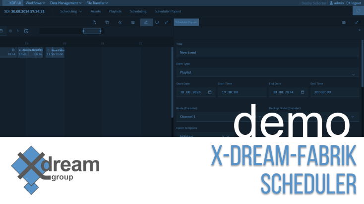 x-dream-Fabrik is a pre-integrated, pre-configured and managed end-to-end solution for the media industry. Thanks to its unique UI and microservices architecture it covers the complete business process from content production to post-production, asset management, story creation to playout, publishing, sales and distribution. x-dream-Fabrik is a ready-to-go platform with a clear licensing model. It runs on-premises, in public or private clouds or hybrid.